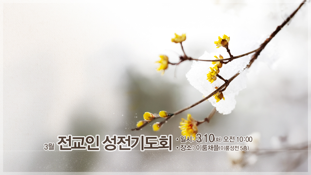 하나님의 능력의 말씀과 기도 응답이 있는 3월 「전교인 성전기도회」에 모든 성도님과 오이코스들의 참석바랍니다.